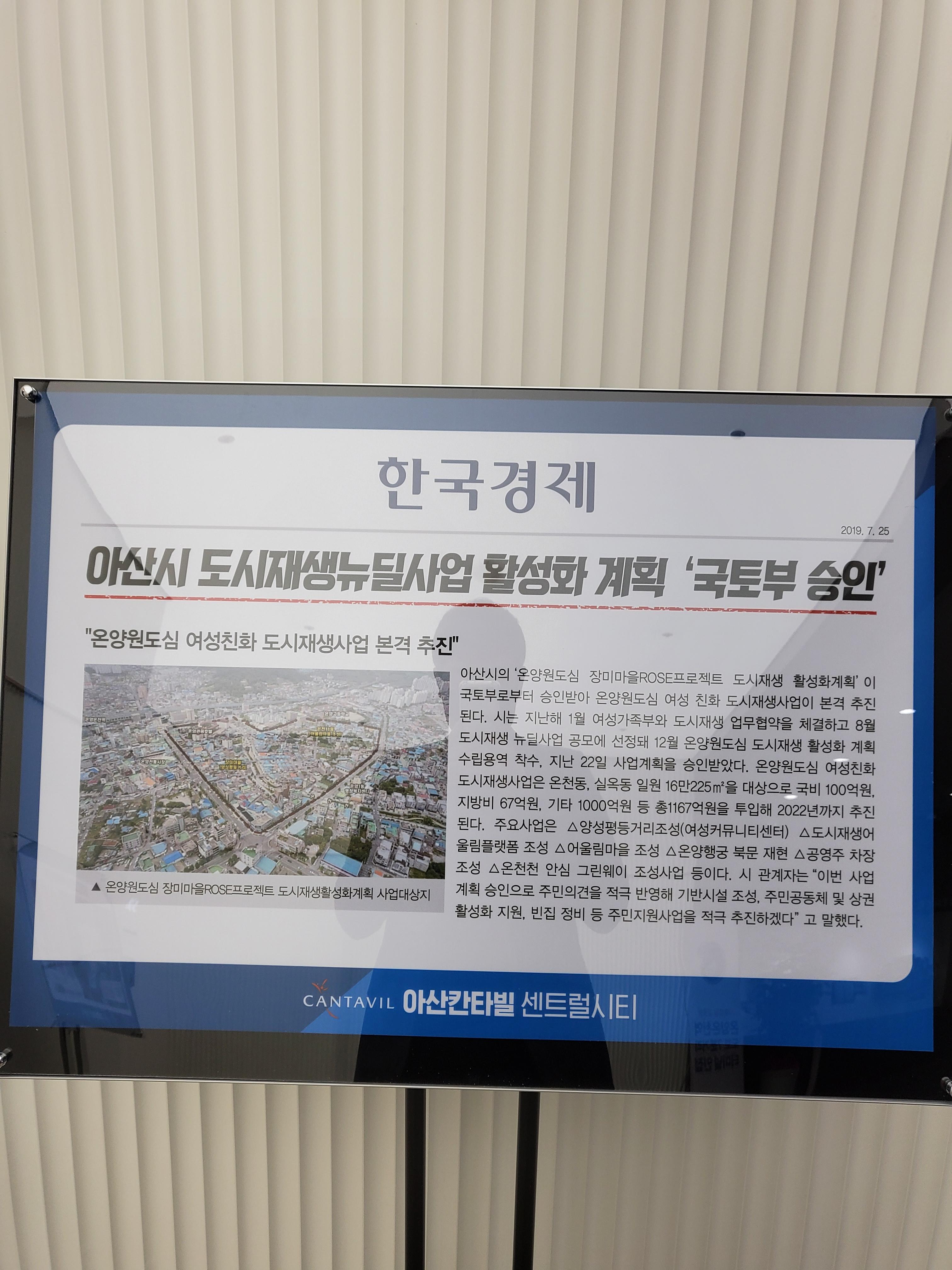 아산칸타빌센트럴시티는 장항선 온양온천역 도보 7분거리, 5분거리내 버스정류장 다수를 이용할 수 있어 초역세권지역에 입지하여 기존 역세권 인근 완성된 인프라의 이용이 용이합니다. 또한 사업지 인근 지역은 현재 도시재생뉴딜사업이 진행될 예정으로 향후 더욱 쾌적한 주거환경이 조성되고 지역 내에서 새로운 랜드마크로 부상할 예정이라고 하니 기대를 해봄직 합니다.