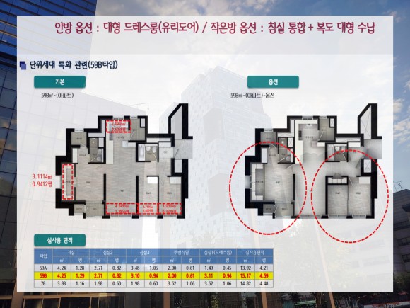 평면을 보시면 4bay 구조 및 드레스룸 특화 설계와 침실통합과 복도대형수납 가족실 계획등 옵션해택도 있어 각 생활공간에 맞게 선택이 가능한 장점이 있습니다. 또한 주민공동시설로는 체력단련을 할수 있는 휘트니스 센터와 키즈 스테이션, 어린이집 놀이터 경로당 등 입주민들을 위한 편의생활도 함께 즐길 수가 있습니다.