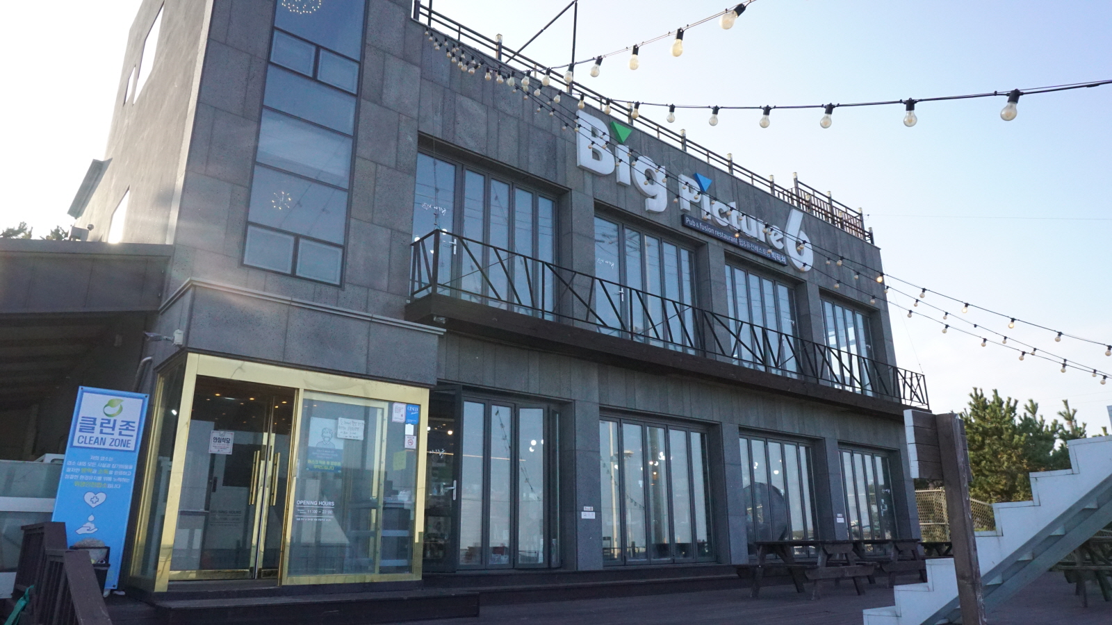 강릉맛집 답게 예약은 따로 안 받고 현장 대기를 해야하는 곳이라 웨이팅 걸어놓고 바로 길 건너 바다 구경을 하러 나왔습니다. 빅피처6 앞쪽은 사진상 보시는것처럼 바로 바다이기 때문에 가을~겨울바다 구경하기도 좋고 야외 데크쪽에 준비해놓은 천국의 길 계단이나 달을 배경으로 사진을 찍으며 기다려도 좋을 것 같습니다. 볼거리가 많아서 웨이팅시간이 짧게 느껴져요.