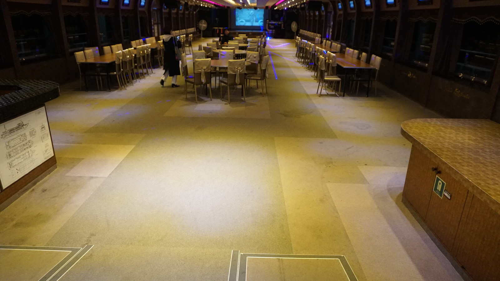 출항 장소는 주문진 시장 입구 쪽 수협 건물 뒤편 선착장이니 위에 올려드린 지도로 정확하게 확인 후 이용하시면 되겠습니다. 저는 금, 토요일 저녁에 출항해 선상에서 불꽃놀이를 볼 수 있는 음악 불꽃 크루즈를 이용했습니다. 여행의 로망이죠? 사람들 없는 사진을 남기고 싶어 1등으로 탑승해 다행히도 사진을 이쁘게 남길 수 있었는데 생각보다 훨씬 큰 규모에 크루즈도 깔끔해서 만족스러웠습니다.
